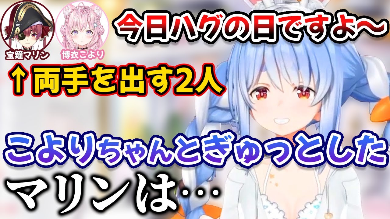 ぺこらを見つけハグの日に抱きつこうとしてきたこより...