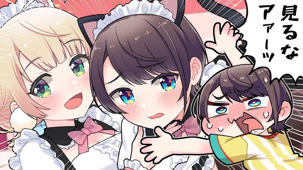 【手描き】猫コンカフェで恥ずかしがるスバルを愛でるしぐ...
