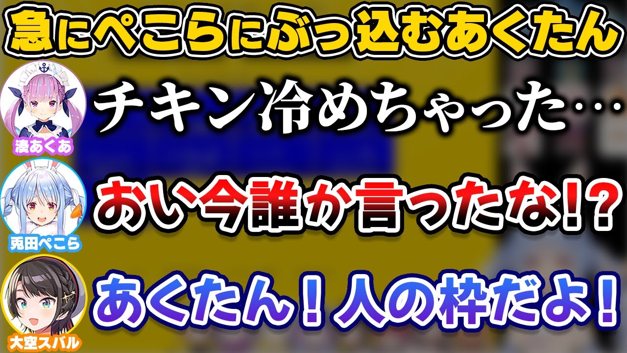 ぺこらに「チキン冷めちゃった…」をぶっ込むあくたん【ホ...