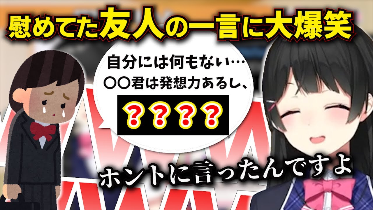 卑屈になりすぎた友人の一言で慰めてたにも関わらず爆笑し...