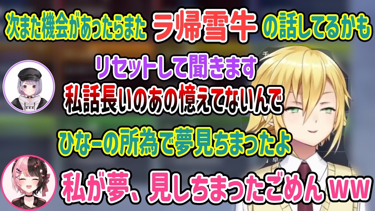 ラ帰雪牛の話を兎咲ミミに話すも全然刺さらず夢から覚める...