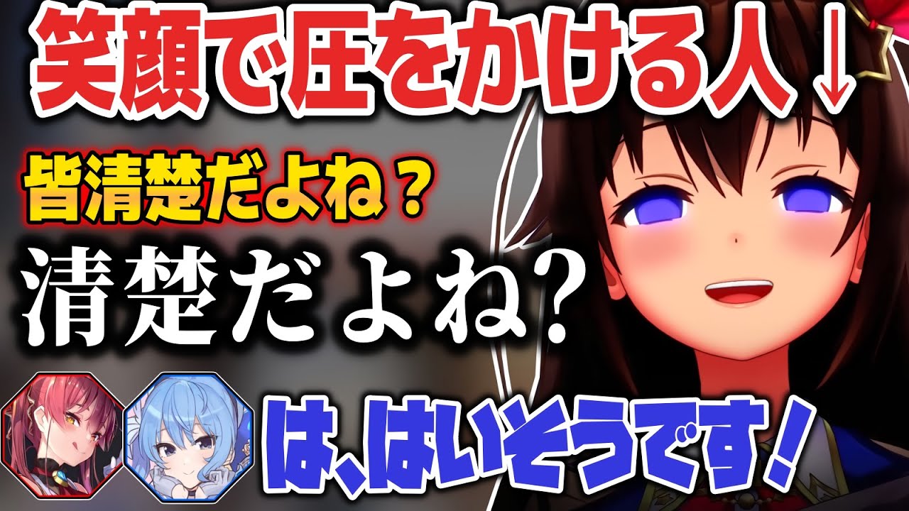 そら先輩の笑顔の圧に気圧されて清楚を偽る船長、すいちゃ...