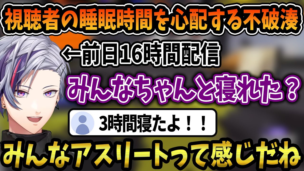 前日の無限配信編で視聴者の睡眠時間を心配する不破湊【に...