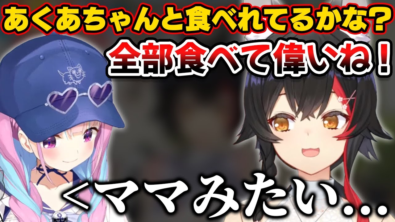 あくたんの食事を見てママ目線になるミオしゃ【ホロライブ...